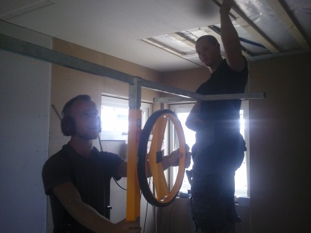 Kalle och Markus gipsar innertak